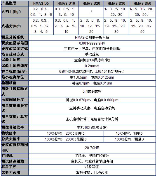 HMAS-D5/10/20/30/50維氏硬度測量分析系統是本公司推出的第六代光機電一體化的高新技術產品,該機器造型新穎,具有良好的可靠性,可操作性和直觀性,是采用精密機械技術、光電技術、圖形圖像處理技術和材料硬度分析軟件的新型維氏和努普硬度測試儀器。