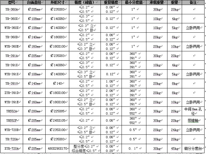 四、YR系列多齒分度臺技術規格: