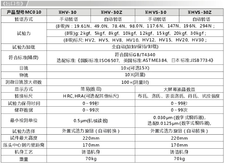 (8級)標尺: HV1、HV3、HV5、HV10、HV20、HV30; |