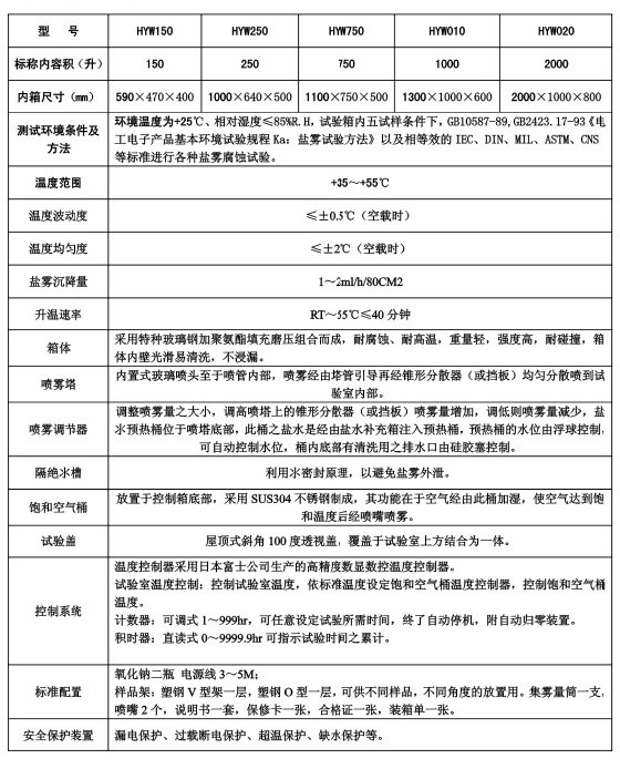 MC028系列鹽霧試驗箱 一、產品簡介 本鹽霧腐蝕試驗設備利用含鹽溶液或酸性含鹽溶液,在一定的溫度和相對的濕度的環境下對材料或產品進行加速腐蝕,重現材料或產品在一定時間范圍內所遭受的破壞程度。設備可以用來考核材料及其防護層的抗鹽霧腐蝕的能力,以及相似防護層的工藝質量比較,也可以用來考核某些產品抗鹽霧腐蝕的能力。它和環境試驗設備中的干燥箱,高溫箱,低溫箱,沖擊箱,低氣壓試驗箱等屬于同一類環境試驗設備。二、技術參數: