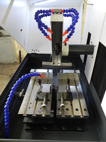 | 切割方式 | 手動三軸切割 | 有效進刀距離 | 250+ | 切割臺尺寸 | 400X | 切割片規格 | (350-450)X(2.0-4.0)X | 加持臺規格 | 分體式雙層可移動精密定位平臺 | 冷卻系統 | 自動(水冷4通道) | 水箱容量 | | 電機功率 | 5.5KW | 機臺形式 | 立地一體式 | 電源 | 380V | 重量 | | 標準配置: | | 主機 | 一臺 | 冷卻系統 | 一套 | Y向移動平臺 | 一套(主機上) | X/Y雙向定位平臺 | 一套(主機上) | 推進夾具 | 兩付 | 隨機工具 | 一套 | 精切片 | 兩塊 | 技術文件 | 說明書一份、合格證一份、保修卡一份 | 選配: | 圓盤夾具、齒條夾具、萬能夾具、縱剖夾具 | 其他 : | 特殊工件可定做 |